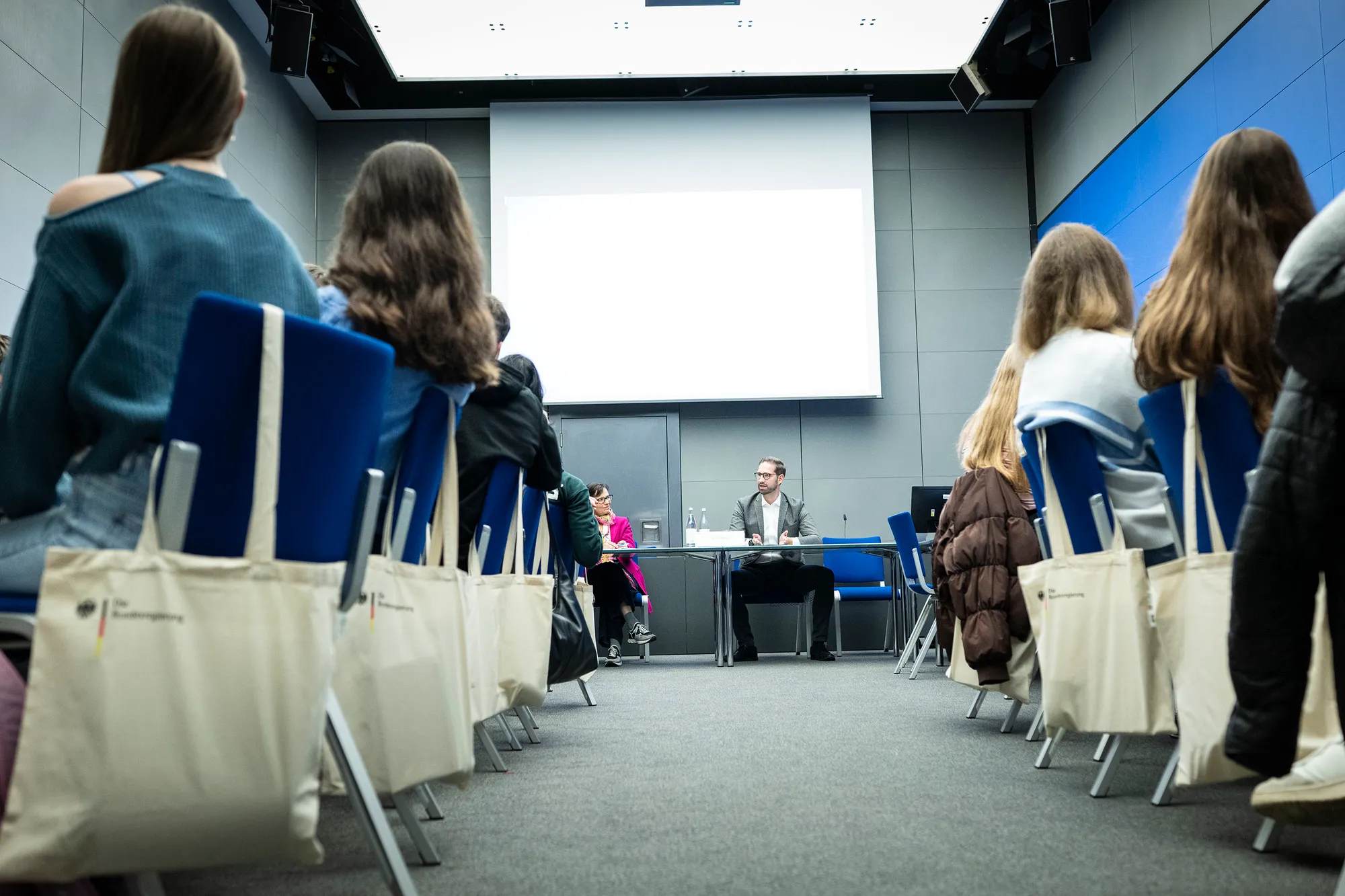 Vom 14. bis zum 16. Oktober 2025 haben wir, als Preisträger im Rahmen des 72. Europäischen Wettbewerbs, unsere Bundeshauptstadt Berlin besucht. Nachdem wir am Anreisetag – nach einigen Schwierigkeiten mit der Bahnverbindung aus Hannover – angekommen waren, haben wir uns ins Presse- und Besucherzentrum der Bundesregierung begeben. Nach guter Versorgung stellten wir uns gegenseitig unsere Arbeiten vor. Wir waren überrascht, wie viel Mühe und Arbeit in die meisten Projekte investiert worden war. Als besonders beeindruckend empfanden wir einige der Bilder, in welche Dutzende von Arbeitsstunden eingeflossen waren. Einige Zeit später durften wir den Stellvertretenden Regierungssprecher Steffen Meyer treffen. Er beantwortete sämtliche Fragen von uns ausführlich und erzählte uns von seinem Arbeitsalltag.