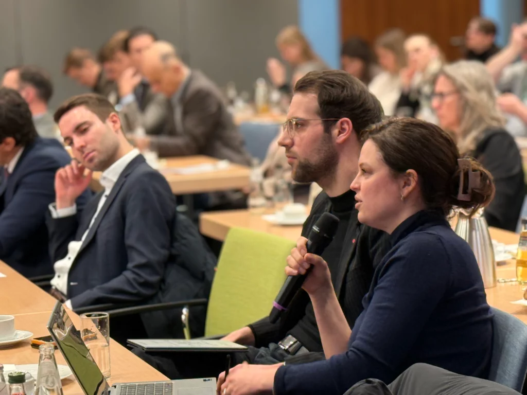 Ole Funke, Leiter der Gruppe 52 im Bundeskanzleramt, gab Einblicke in Verlauf und Ergebnisse der informellen Tagung, sowie in die Perspektive der Bundesregierung zu Fragen der Wettbewerbsfähigkeit. Dabei standen drei übergeordnete Schwerpunkte im Fokus: Erstens die Vertiefung des Binnenmarktes, z.B. durch das Großprojekt „28. Regime“. Zweitens der Bürokratieabbau mit beschleunigten Verfahren und verbesserten Impact Assessments. Und drittens eine selbstbewusste Handelspolitik, die einer regelbasierten Ordnung folgen und gleichzeitig handelspolitische Schutzinstrumente wie „European Preferences“ für ausgewählte Schlüsseltechnologien umfassen soll. Die damit verbundene Frage der Finanzierung war kein Kerpunkt des Treffens - zugleich wurde eine Modernisierung des Mehrjährigen Finanzrahmens (MFR) hin zu Investitionen in Wettbewerbsfähigkeit und Sicherheit in Aussicht gestellt.