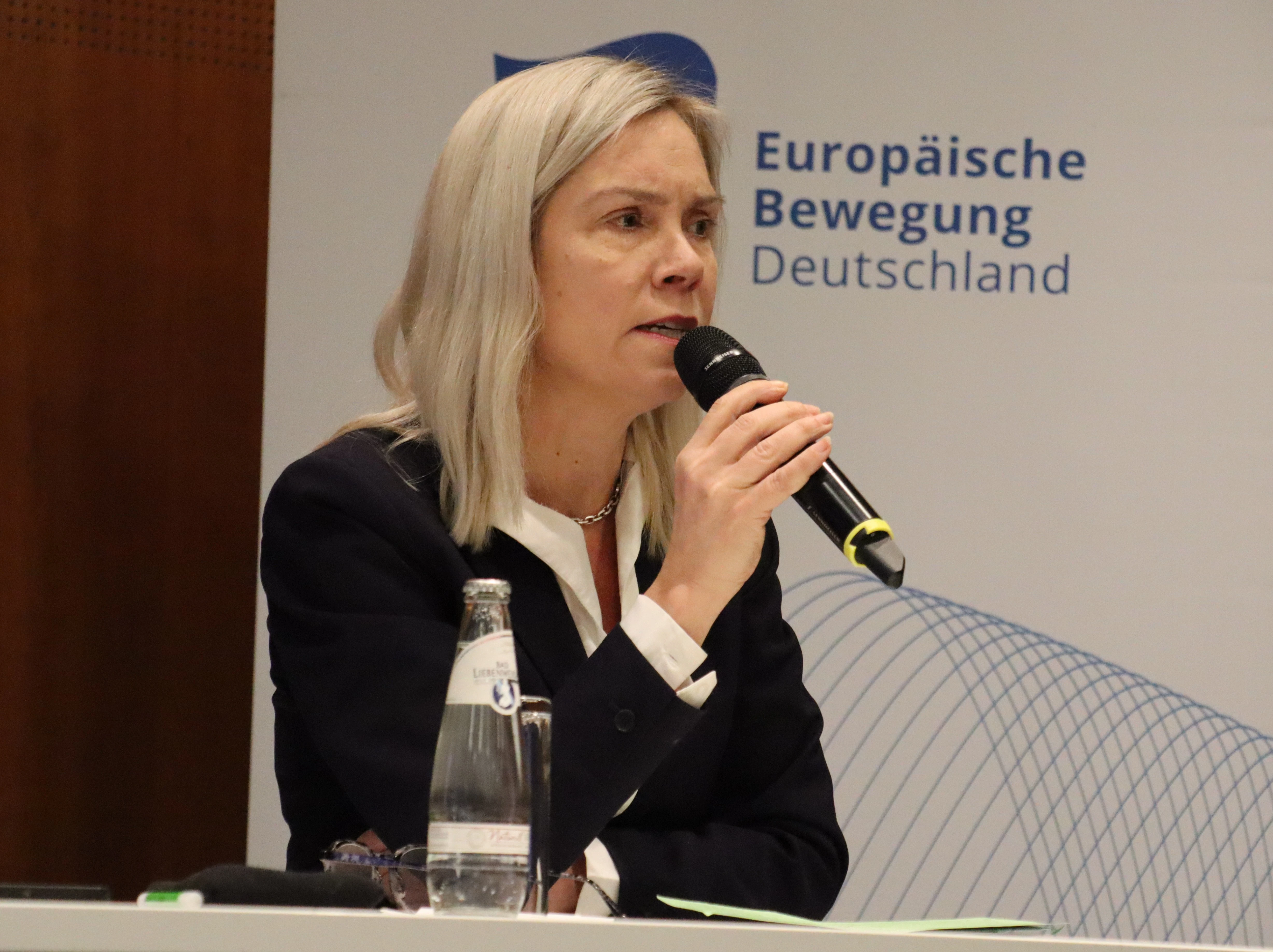 Die Präsidentin der Europäischen Bewegung Deutschland e.V., Dr. Anna-Maija Mertens, unterstrich aus Sicht der EBD den Handlungsdruck: Europa befinde sich wirtschaftlich wie politisch in einer defensiven Position. Daher brauche es in den Sektoren Bürokratieabbau, Digitalisierung und Infrastruktur verbindliche und umsetzbare Entscheidungen. Auch institutionelle Reformen, etwa mit Blick auf Erweiterung und Mehrheitsentscheidungen im Rat, müssten Teil der Debatte sein. Sie verwies dabei auf das aktuelle Positionspapier der EBD zur europäischen Wettbewerbsfähigkeit, das konkrete Reformvorschläge bündelt und die Notwendigkeit einer strategisch ausgerichteten Investitions- und Binnenmarktpolitik betont.